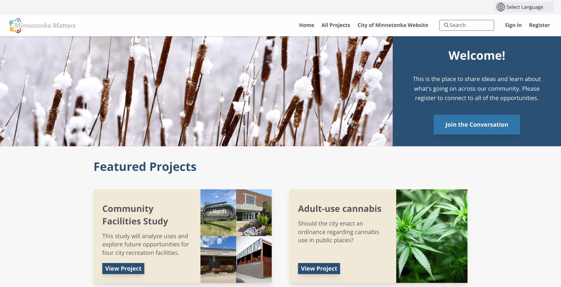 The city website has a Minnetonka Matters page where the public can share ideas and learn about projects in the city.